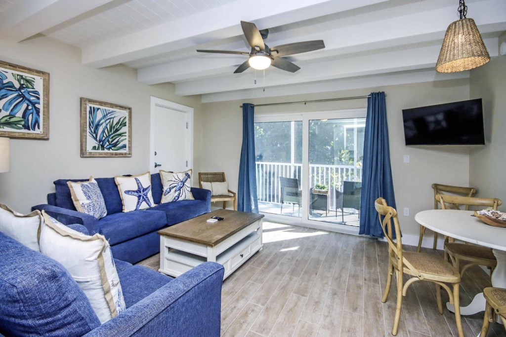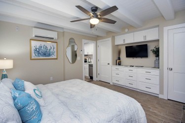 Escape to the serene paradise of Sanibel Island with a stay at our charming beachside retreat, a newly remodeled first-floor unit ideal for up to 4 guests. This delightful one-bedroom getaway is perfectly positioned just a stone's throw from the golden sands, offering both luxury and convenience for your perfect beach vacation. Upon entering this stylish first floor condo, you will be greeted by an air of tranquility and clean, modern aesthetics. The living space is thoughtfully furnished, featuring a king size bed and a queen-size sleeper sofa, ensuring ample accommodation for your party. The highlight here is the inviting screened lanai, where you can unwind with a good book or enjoy a meal al fresco while basking in the mild Sanibel breeze. Aspiring chefs will delight in the fully equipped kitchen. Outfitted with a microwave, dishwasher, toaster, and a single serve coffee maker that takes your favorite coffee pod or grounds, it has everything you need to prepare your favorite meals just as you would at home. Adjacent to the kitchen, the dining area serves as a lovely spot for intimate meals or planning the day's adventures. The full bathroom features a walk-in shower, stocked with all essentials including a hair dryer. For added convenience your room has an iron and ironing board and the property includes several property laundry facilities, ensuring you can pack light and always have fresh attire. Entertainment is never far away with TVs in every bedroom and living room with complimentary Wi-Fi to stream all your favorite shows, ensuring that you stay connected and entertained throughout your stay. Head outside to the heated, freshwater pool, or grill up something tasty at the barbecue and picnic area. A shell washing station and on-site bike rentals offer unique ways to explore and enjoy the local surroundings. Located on the serene eastern end of Sanibel Island, the property is just a short walk from both the iconic Sanibel lighthouse and a selection of shops and restaurants. The immediate access to Sanibel’s extensive bike paths invites you to explore the natural beauty of the island at your leisure. The friendly staff and impeccably maintained grounds ensure your stay is comfortable and stress-free. From beach chairs and umbrellas to keyless unit entry every detail has been considered to create a haven of comfort and convenience. In summary, whether you’re looking for a peaceful retreat to unwind, an adventurous getaway to explore the natural wonders, or simply a pristine spot by the sea to call home for a few days, this Sanibel Island vacation rental promises an unforgettable stay filled with delightful comforts and conveniences. This Sanibel Island vacation rental is located on the quiet, east end of the island, walking distance from shops and restaurants, near the Sanibel Lighthouse, and direct access to the Sanibel bike paths. Come see for yourself all that Colony Inn has to offer for the perfect Sanibel vacation!!